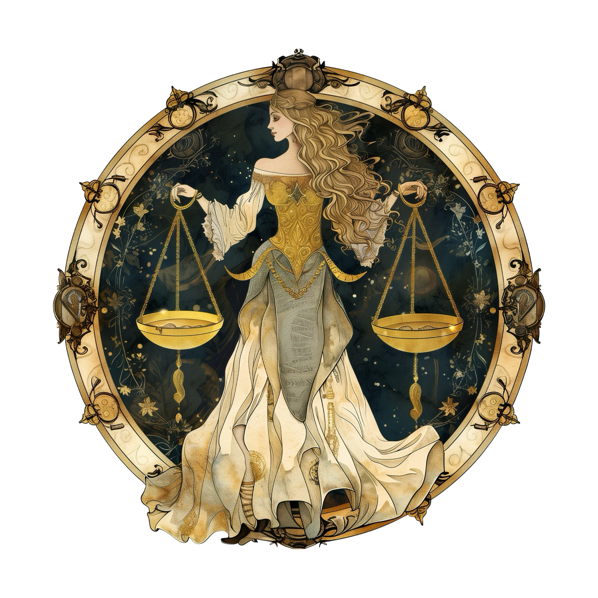 天秤宮は、愛と美の秤を手に立つ
