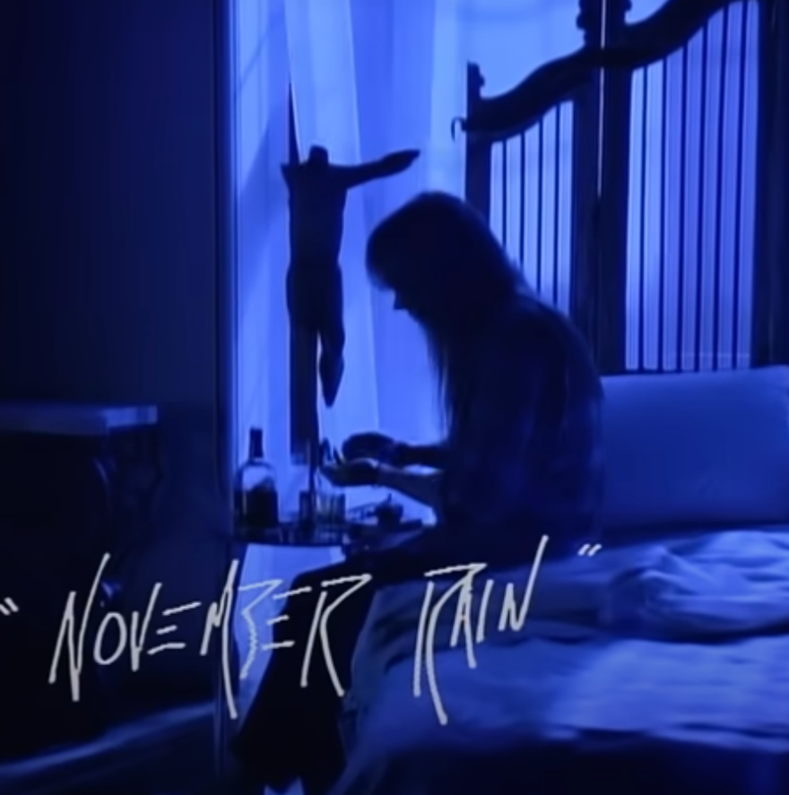 ビデオは単独で解釈されるべきではないことは一目瞭然?ですね。これは二部、あるいは三部構成というのはリリース時からの定説です。ただ、Estrangedはトーンが違うかなと。雰囲気とかドラマ性の一致ということで、November Rain&Don't Cryの2本を続けて連載的なリーディングを試みましょう。