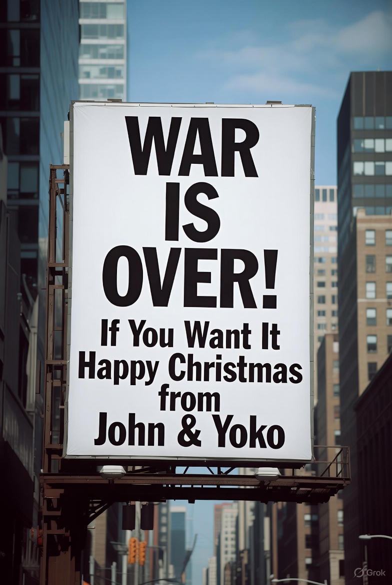 「WAR IS OVER! If You Want It Happy Christmas from John & Yoko」 白地に黒い文字だけの、シンプルな宣伝。 世界中の都市に同じ看板が立った。ロンドン、東京、パリ…… まだベトナム戦争が終わらない頃、 ジョンは「戦争は終わるよ、ただお前が望めば」って、世界中に叫んだ。